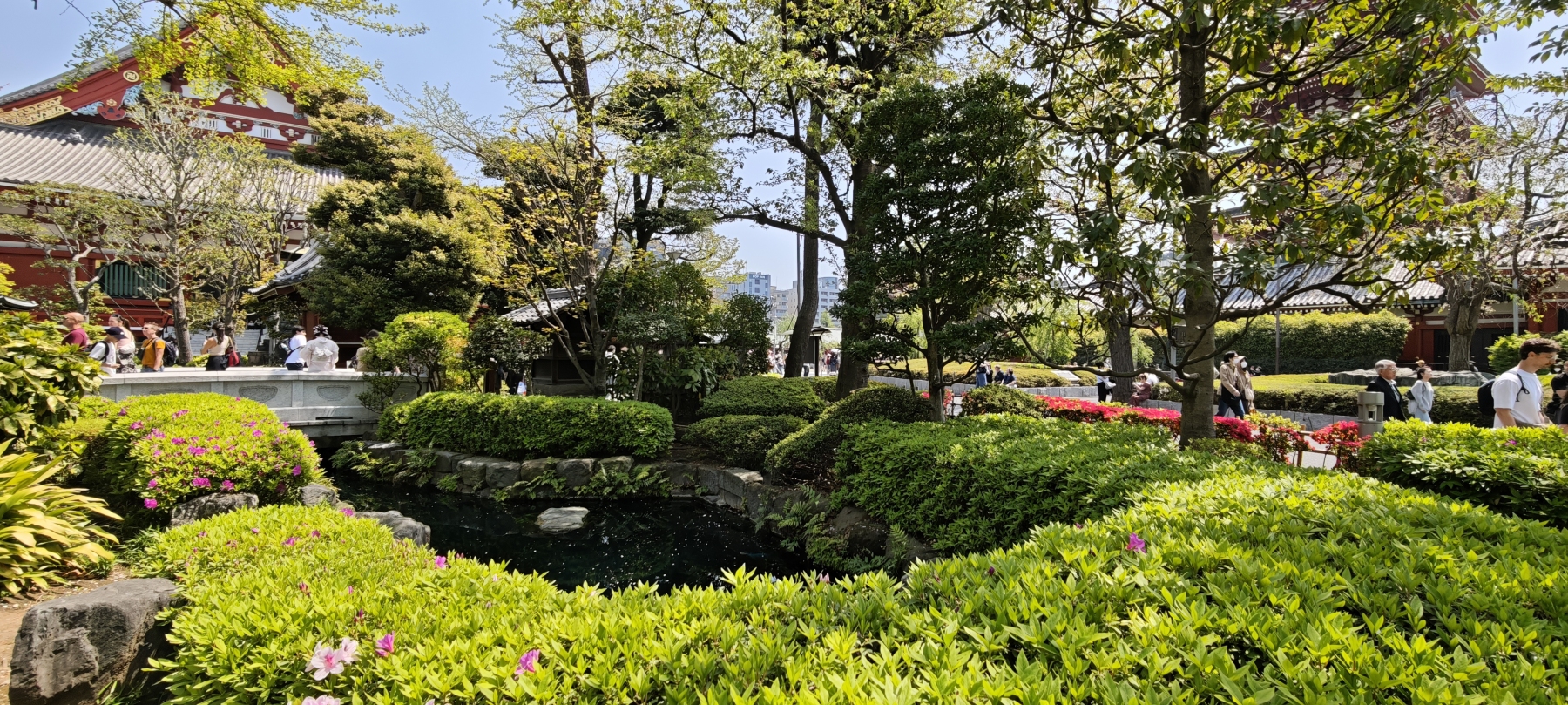 Królują wiśnie, miłorzęby i azalie, choć spotkamy również sosny oraz derenie i klony palmowe. Zamiast trawników spotkamy ziemię porośniętą mszakami lub skrzypami. Natura jest w pełni ujarzmiona przez człowieka jednocześnie będąca wzorcem do naśladowania. Rośliny są cięte, formowane na przeróżne topiary. Zaskoczeniem dla mnie były formowane żywopłoty azaliowe w pasach drogowych, czy na przystankach. Szczególnie dba się o wiekowe drzewa, które stabilizuje się konstrukcjami bambusowymi lub sznurami, zabezpieczając przed złamaniem lub śniegołomami, dodatkowo okłada się pnie drzew korą drzew.