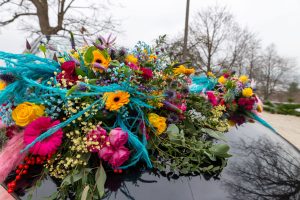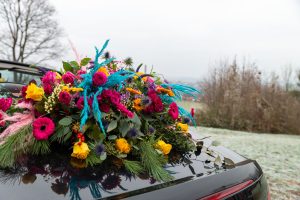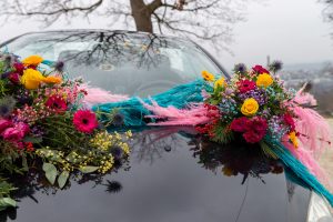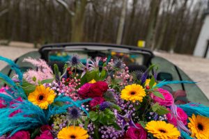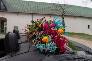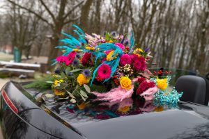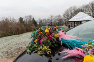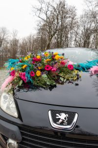 Nawiązując do Cygańskich Taborów, udekorowałam również samochód – tak pięknie udekorowanym samochodem Młoda Para może wyruszyć w swoją Podróż Życia.