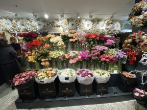 Wizyta w Londynie nie może być udana bez wizyty w Harrodsie i na szczęście, kwiaciarsko również okazała się dość udana. Wprawdzie kwiaciarnia zlokalizowana jest na mało intuicyjnym poziomie -1, niemniej patrząc na asortyment (książki i ozdoby choinkowe) pomysł wydaje się być dobry. Jednocześnie słowo 'kwiaciarnia’ również i w tym przypadku wydaje się być trochę na wyrost. Tak naprawdę była to zagospodarowana wnęka, część większej przestrzeni, a nie osobne pomieszczenie.