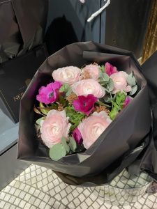 Enoch Hitchcock z Bulbous flowers, z którym wdałam się w pogawędkę, powiedział, że jego najbliższa konkurencja znajduje się dopiero w Soho (2 przystanki metrem w ścisłym centrum Londynu!), więc nie jest dla niego odczuwalna, ale odkąd wprowadzony został hybrydowy model pracy, jego tydzień sprzedażowy skurczył się o jeden dzień. Zwyczajowo Brytyjczycy pracują zdalnie w piątki, więc jest to dzień w którym ruch w okolicy kwiaciarni maleje. A to spory problem, ponieważ w piątki można było kupić kwiaty, by odwiedzić znajomych w weekend. Wraz ze zmianą formatu pracy, zniknęła też część jego klientów.