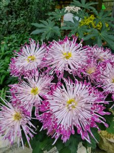 Chryzantem przede wszystkim kojarzą się w Polsce jako rośliny żałobne, głównie na kwiat cięty. Na wystawie zaprezentowano odmiany w doniczkach, które można wykorzystać nie tylko w dekoracjach funeralnych. Sprawdzą się również w obsadzeniu pojemników do dekoracji wnętrz, na balkony, tarasy, ogrody na dachach lub rabaty. Wiesław Grzegorzewicz pokazał bardzo okazałe egzemplarze odmian o drobnych kwiatach. Pogrupowane w dużych plamach miedzy zimozielonymi roślinami dały imponujący efekt. Z pewnością podobnie prezentowałyby się na tarasach lub przy wejściu do budynku. Kolekcja odmian z Ogrodnictwa Aniela i Andrzej Kłak pokazała dużą różnorodność bardzo ciekawych kształtów i barw kwiatów. Nowe, jeszcze bezimienne odmiany przyciągały uwagę mocnymi plamami koloru oraz intersującą budową kwiatów.