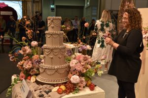 Było na pewno smakowicie nie tylko przez to, że na scenie dekorowano kwiatami tort. Na tym pokazie mistrzowie użyli samych „słodkich” kwiatów w bardzo pastelowej kolorystyce a wykonane prace były bardzo eleganckie. Styl zdecydowanie glamour.