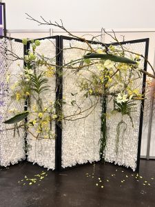 Druga kwestia – materiał, oj tu się działo! Najlepszej jakości kwiaty i dodatki niesamowite konstrukcje i naczynia i kryzy -były idealnie dobrane. Floryści starali się używać jak najwięcej naturalnych materiałów do ich tworzenia a materiał roślinny naprawdę piękny. Niestety, również trudno dostępny na naszym rynku, ale tego typu pokazy są właśnie po to, by go zaprezentować. Można ten materiał kupić w Polsce, w najlepszych hurtowniach lub zamówić u swoich dostawców.