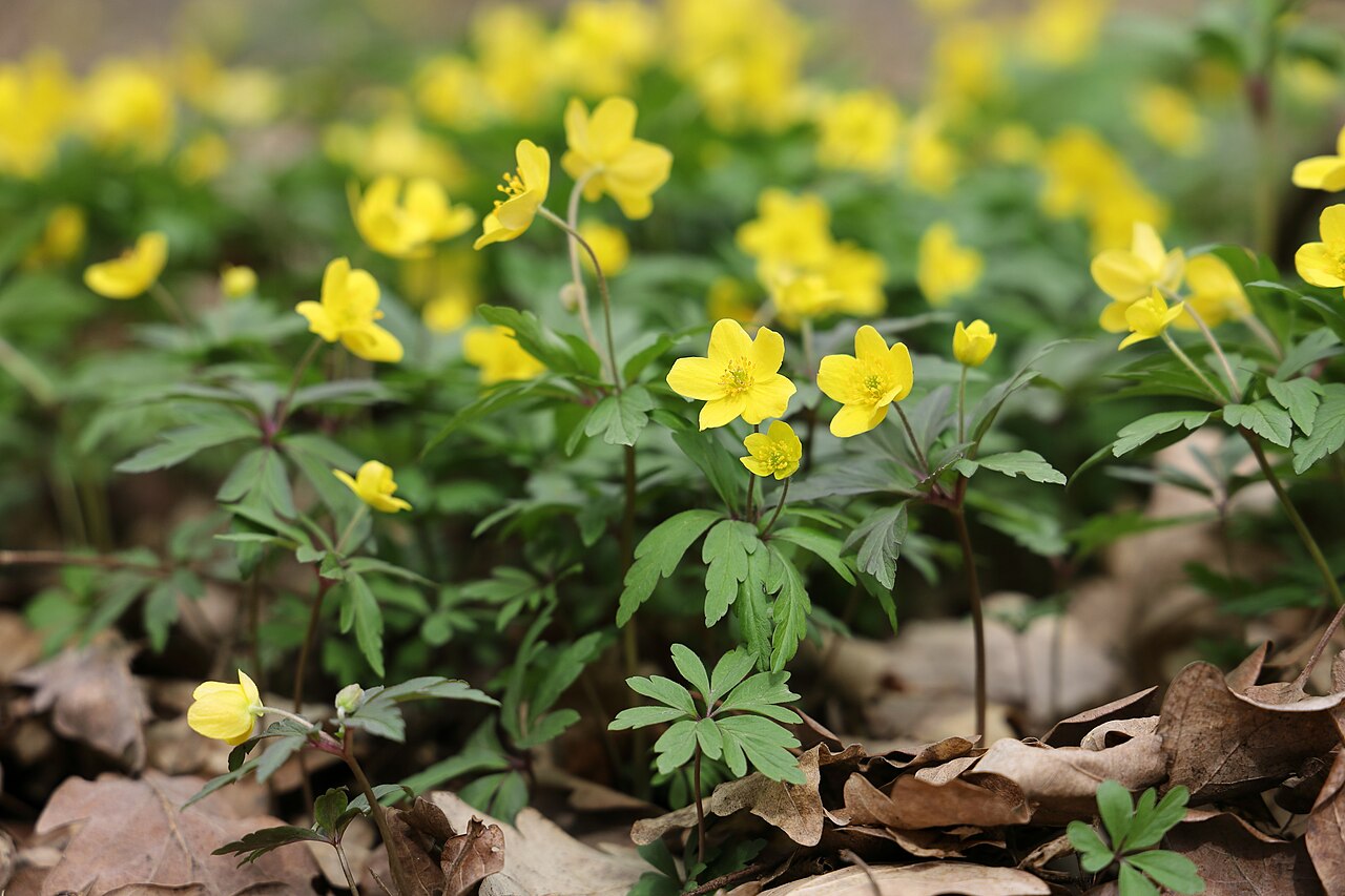 Zawilec żółty Anemone ranunculoides w Polsce pospolicie występuje na nizinach spotkać go można jednak znacznie rzadziej od zawilca gajowego .