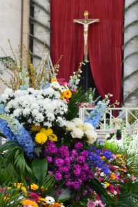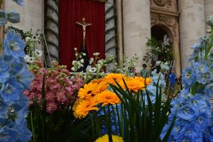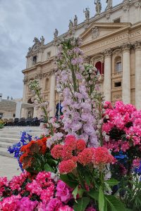 Wielkanoc to święto nowego życia i nadziei. Temat Jubileuszu 2025, „Pielgrzymi Nadziei” , naturalnie idealnie wpisuje się w to przesłanie Wielkanocy. Zarówno logo Roku Świętego 2025, jak i jego kolory będą wyraźnie rozpoznawalne w tegorocznych dekoracjach kwiatowych.