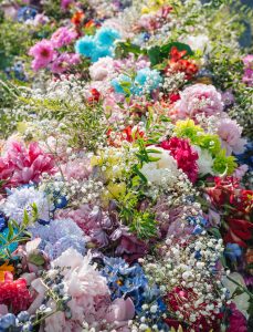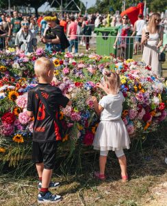 To był moment, w którym natura, florystyka w tym przypadku czerpiąca z tradycji i ludzie połączyli się w jedno. Kwiaty, które pojawiły się wianku – to nasze polskie; słonecznik, piwonie, ostróżki od lokalnego ogrodnika, złocienie, gipsówka, trawy znad jezior i rzek oraz pól, a także susze, czy owoce klonów.