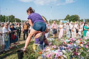 Najpiękniejszym aspektem całego przedsięwzięcia było to, że nie tworzyłyśmy tego wianka sami. W trakcie wydarzenia do naszego stanowiska podchodzili odwiedzający – dzieci, rodzice, seniorzy, turyści i mieszkańcy Warszawy – i dokładali swoje kwiaty.